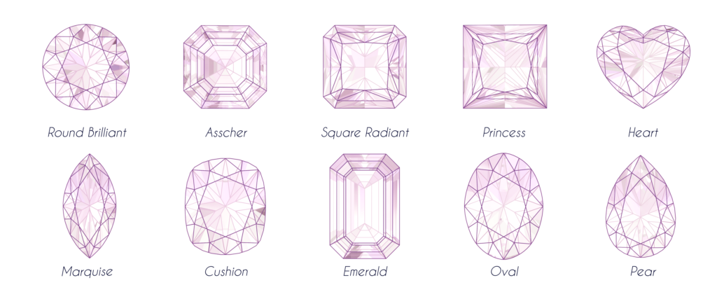ピンクダイヤモンドはカラーレスダイヤモンドと同様にラウンドブリリアントカットもしくはそれ以外のファンシーカットにカットされます。より多くのカットを余儀無くされるラウンドカットは、その他ファンシーカットよりも人気が高く、高いプレミアムを有します。